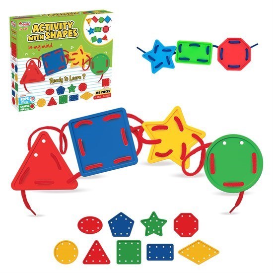 Öğrenmeye hazır mısın? Ürün; 12 adet ip ve 144 adet farklı farklı şekiller ile birlikte 156 parçadan oluşmaktadır. Renkli ve çok çeşitli şekiller, çocuğa renkleri ve şekilleri tanıma imkanı sağlar. Ellerini verimli kullanmasına, denge ve refleks geliştirmelerine yardım eder. Çocuğa odaklanmayı ve dikkatini toplamayı öğretir. Ürün; 3 yaş altı çocuklar için uygun değildir. Sağlık testlerinden geçmiştir. Yerli üretimdir.