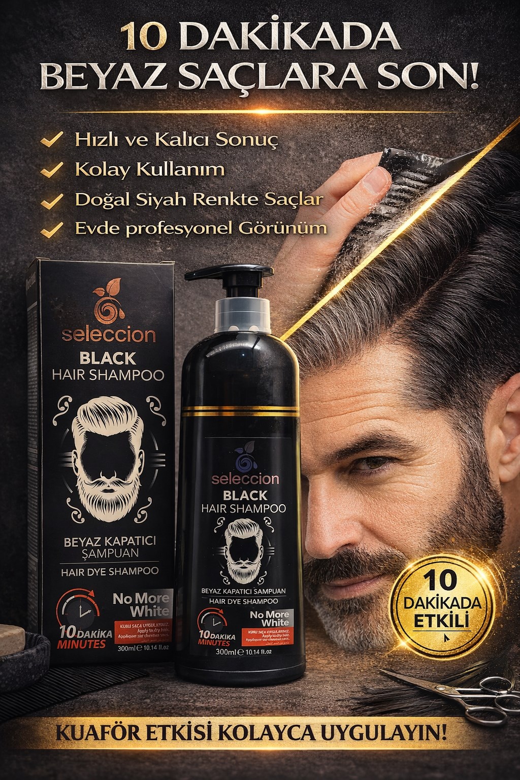 Seleccion Black Hair Shampoo Beyaz Kapatıcı Şampuan 300 ml Erkek Saç Boya Şampuanı
