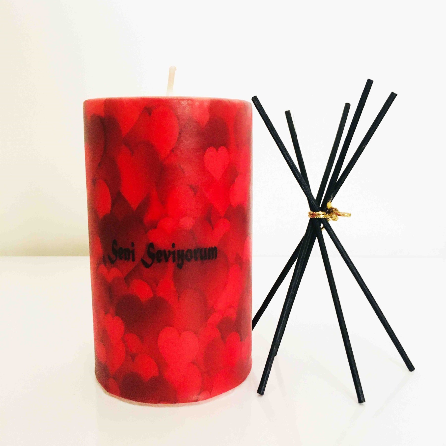 Sevgililer Gününe Özel Seni Seviyorum Temalı Kalpli Desen Baskılı Mum 5