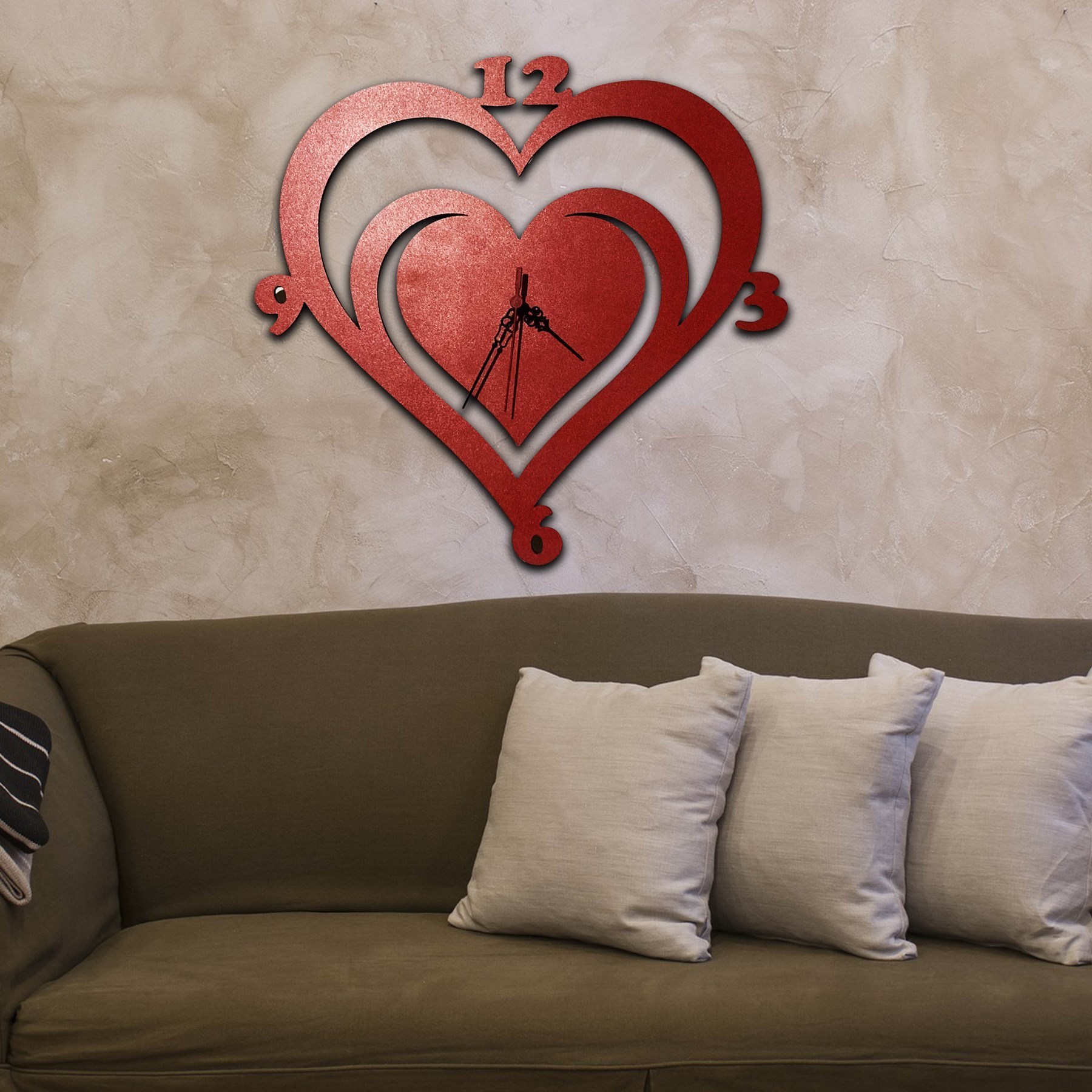 Sevgiliye Özel Dekoratif Kalpli Ahşap Mdf Duvar Saati