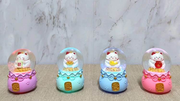 Şans Kedisi Işıklı Kar Küresi