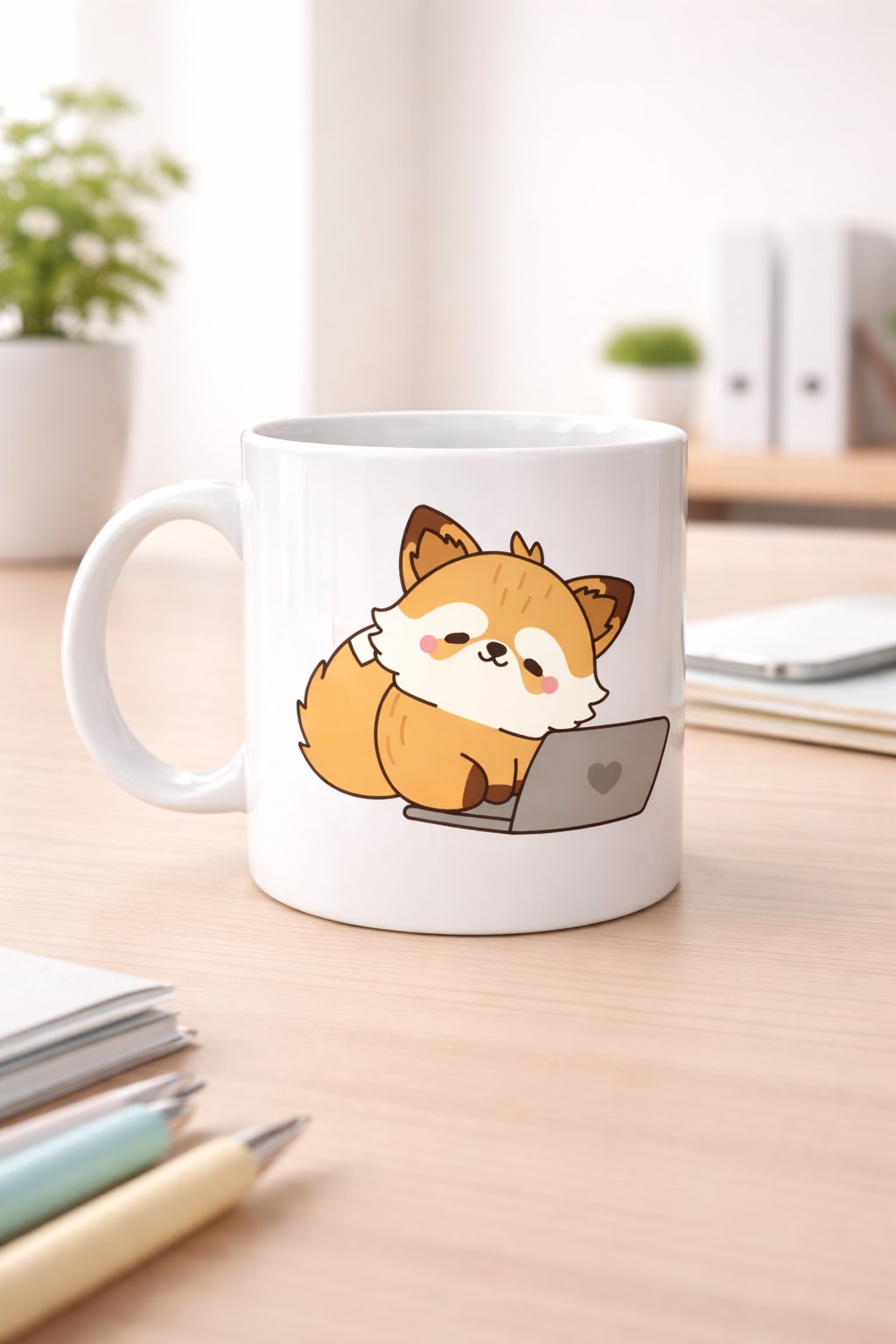 Bu özel tasarım porselen kupanın üzerinde, laptopuyla çalışırken keyif yapan sevimli bir tilki yer alıyor. Hem çalışkan hem de huzurlu havasıyla, özellikle masa başında vakit geçirenler için sıcacık bir motivasyon kaynağı ?