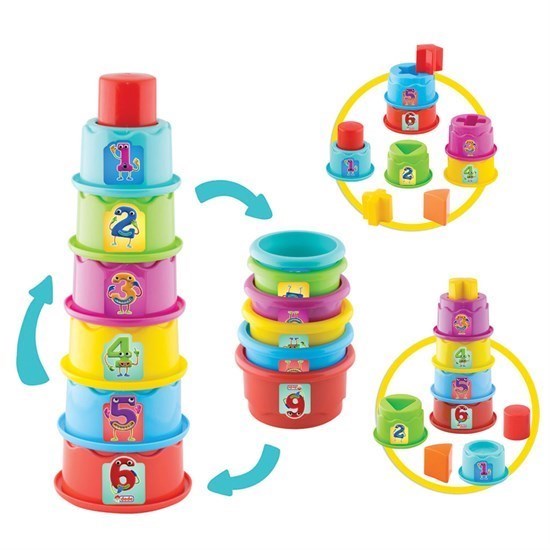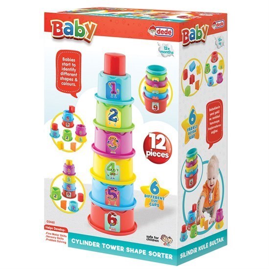 Ürün; 12 parçadan oluşmaktadır. 6 farklı boyda kap ve her kabın içine yerleştirilecek 6 farklı renkte şekil vardır. Bebeklerin yeni şekil ve renkleri tanımaya başlamalarını sağlar. Motor becerilerini ve duyusal yeteneklerini geliştirmeye yardımcı olur. Problem çözme becerisi kazandırır. Ürün, sağlık testlerinden geçmiştir.