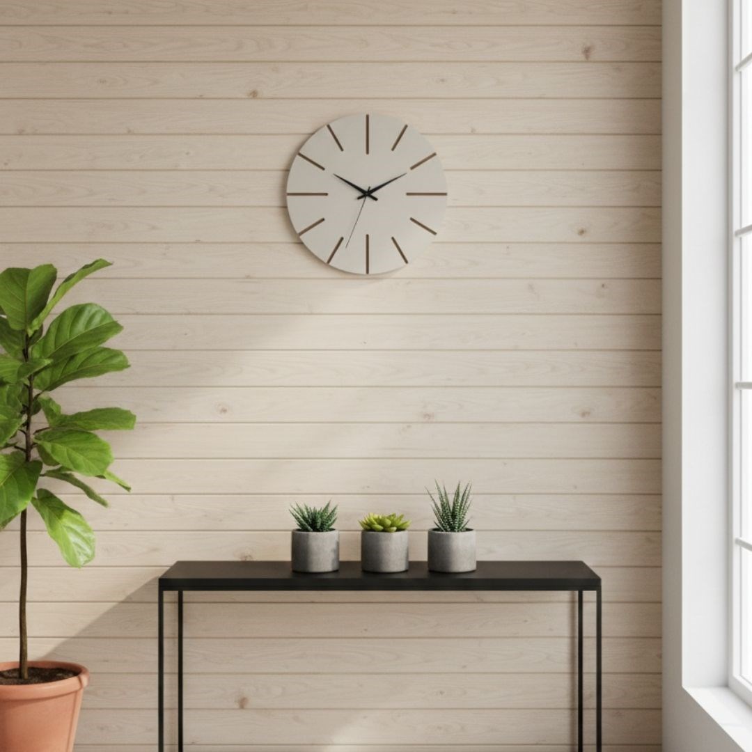Ahşap Minimal Dekoratif Duvar Saati - 33x33 Cm Krem