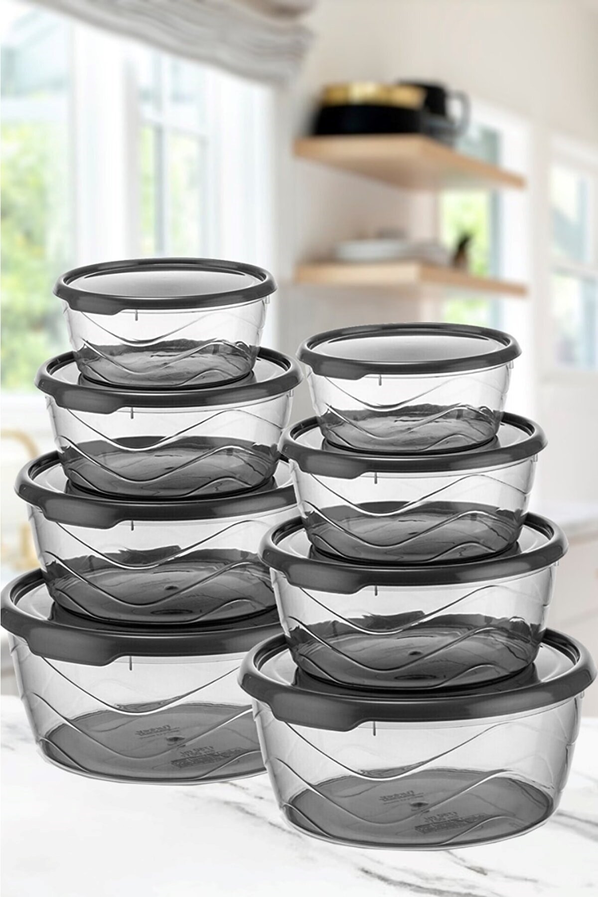 8 Parça Platin Serisi Yuvarlak Sweet Şeffaf Saklama Kabı Dolap İçi Organizer