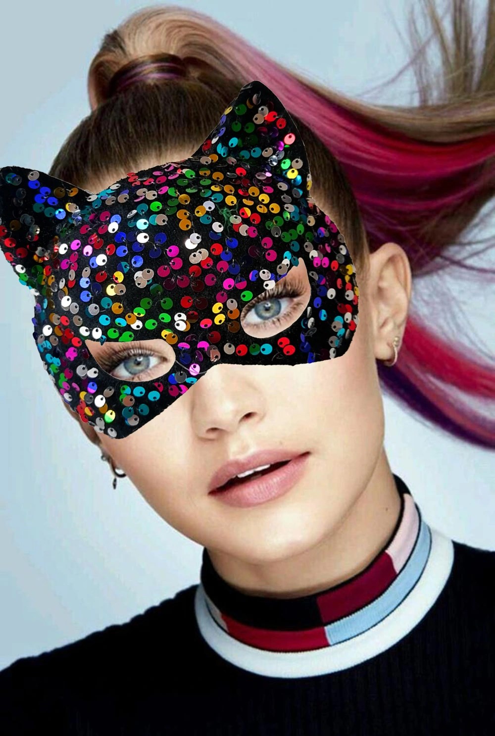 Siyah Süet Gümüş Mavi Simli Kedi Maskesi