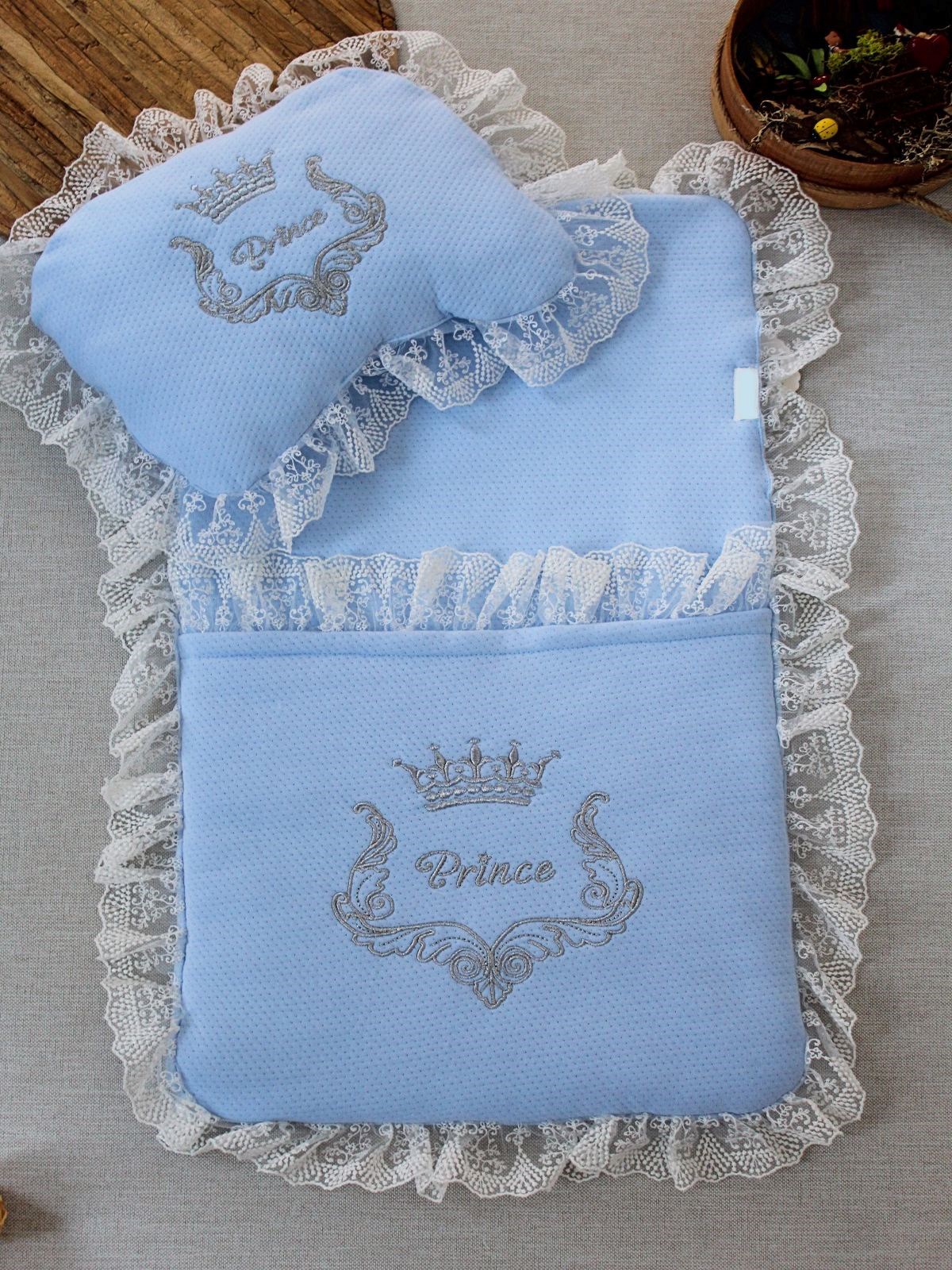 Yenidoğan Sahra Taç Nakışlı Trilüks 2li Alt Açma Seti