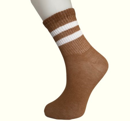 Açık Kahve Beyaz Çizgili Kolej Çorap Orta Uzunluk