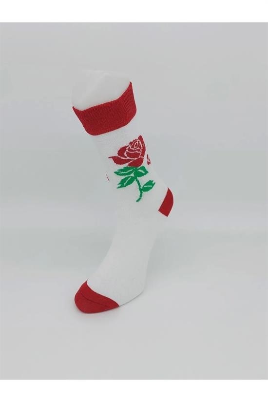 Gül Desenli Soket Çorap - Beyaz 36-40