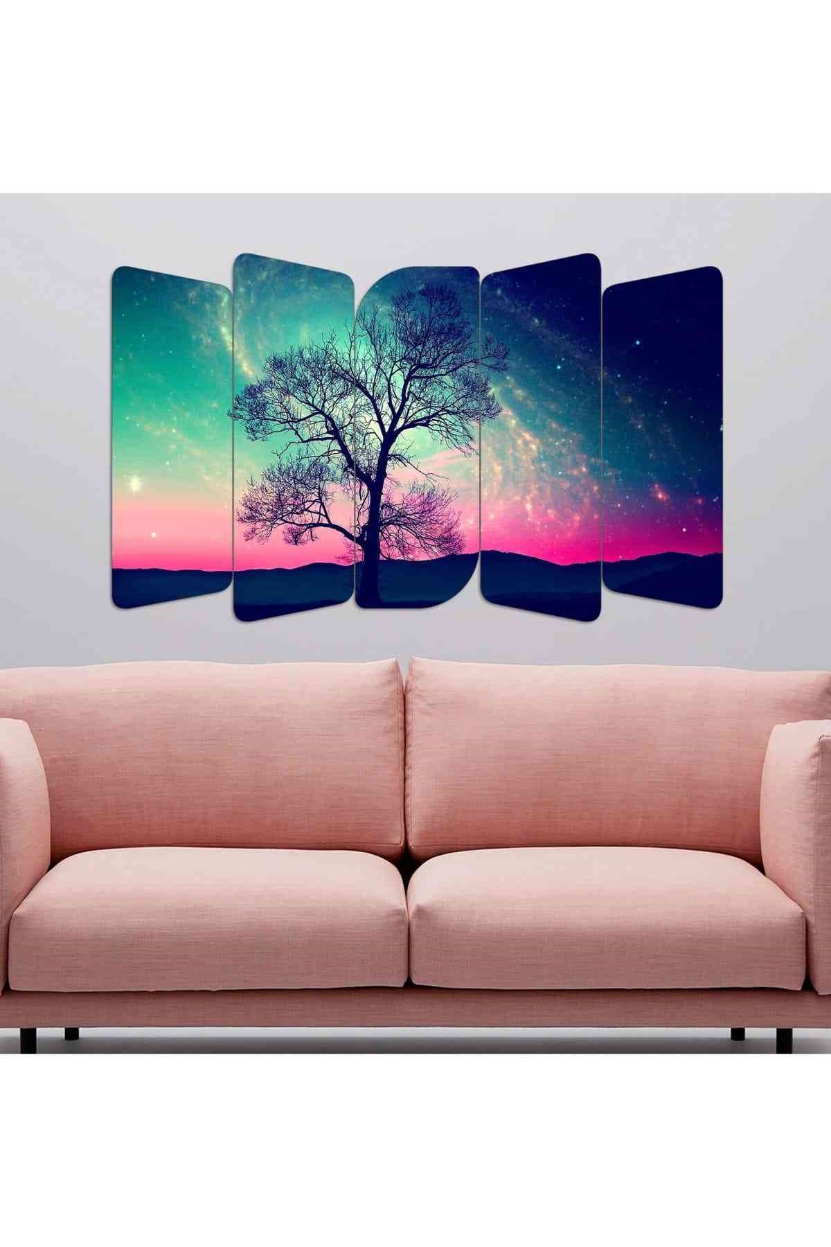 3 Parça Saatli Mdf Tablo Yaprak Desenli - 3S-016 160X60