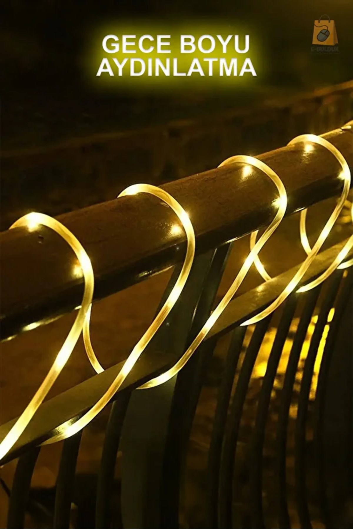 Solar Güneş Enerjili Esnek Flexible Şerit Hortum Bahçe Aydınlatma-10 Metre Sarı Günışığı Aydınlatma