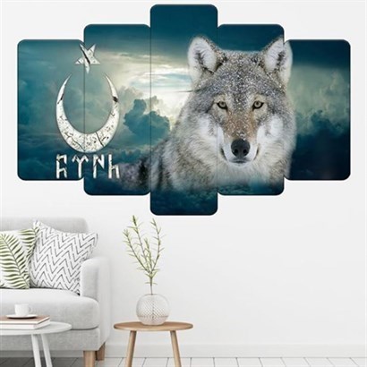 Bozkurt Temalı 5 Parçalı Mdf Dekoratif Tablo 5M-52-17946