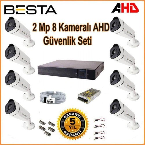 2Mp Ahd 1080P Gece Görüşlü 8 Kameralı Güvenlik Sistemi