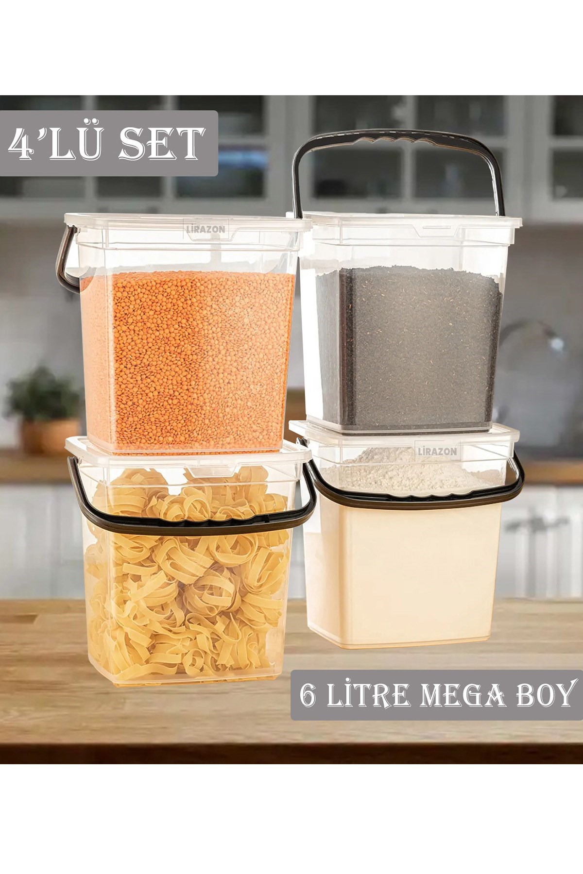 Pratik 4'Lü Şeffaf Saklama Kabı - 6 Litre Kapasite - Un Ve Bakliyat Depolama
