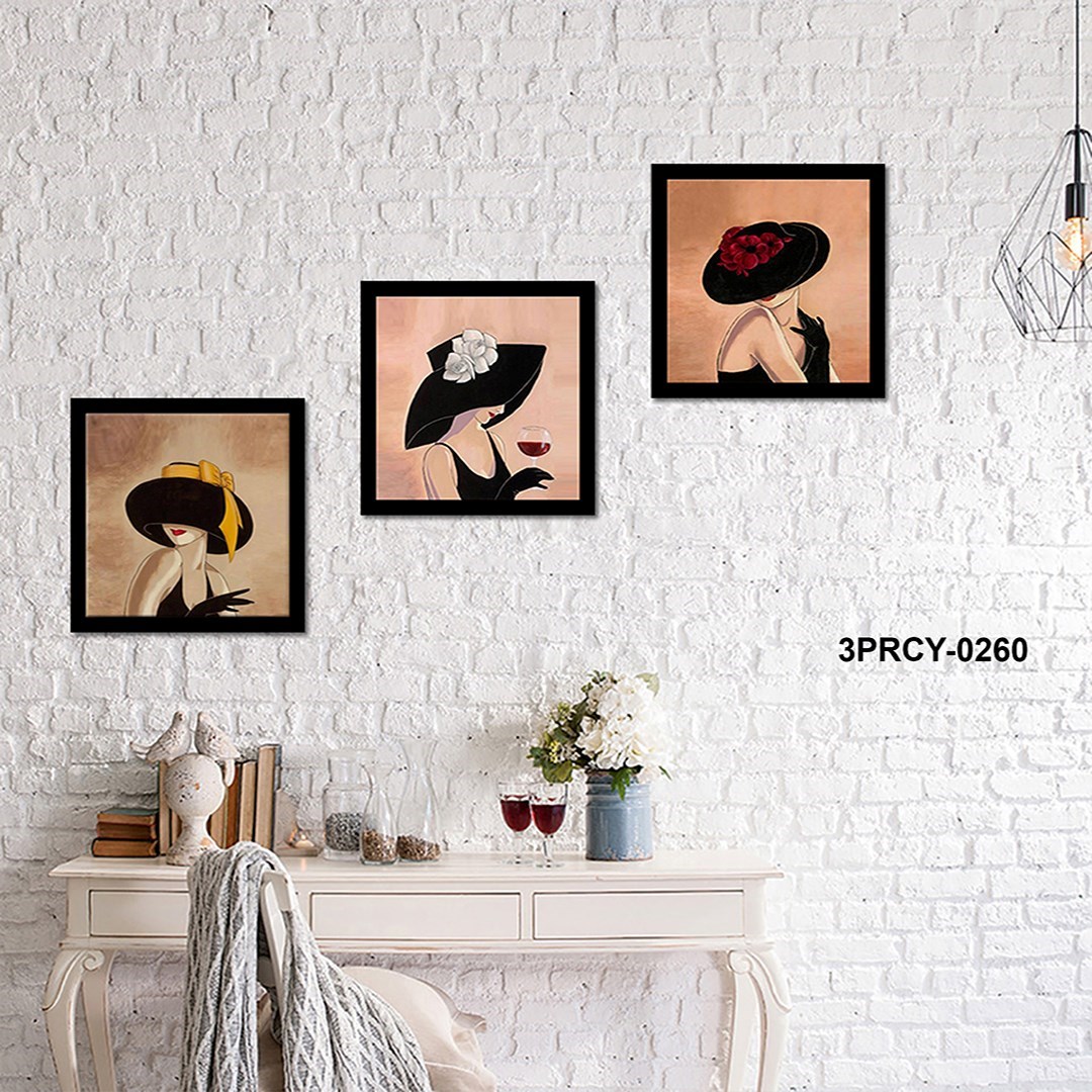 3 Parça Modern Şapkalı Kadın Tasarım Mdf Tablo - 3Prcy-0260 30X30