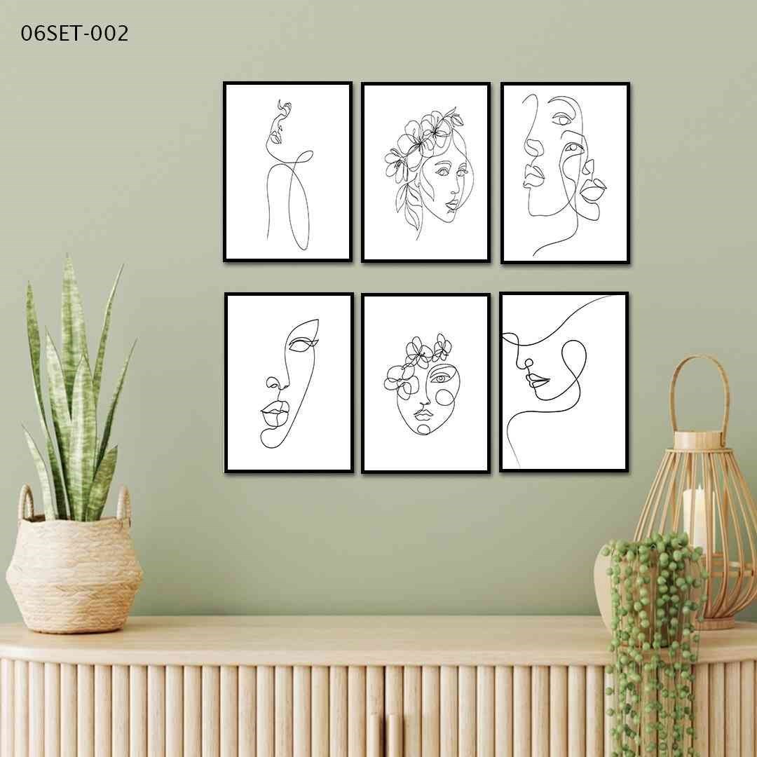 6lı Çerçeve Görünümlü Çizim Kadın MDF Tablo - 6set-002 15x20