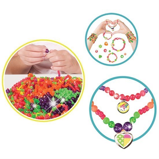 Renk renk boncuklarla, kendi takını tasarla! Kolyeni ve bilekliğini oluştur! Küçük parçalar, 3 yaş altı çocuklar için uygun değildir. Sağlık testlerinden geçmiştir.