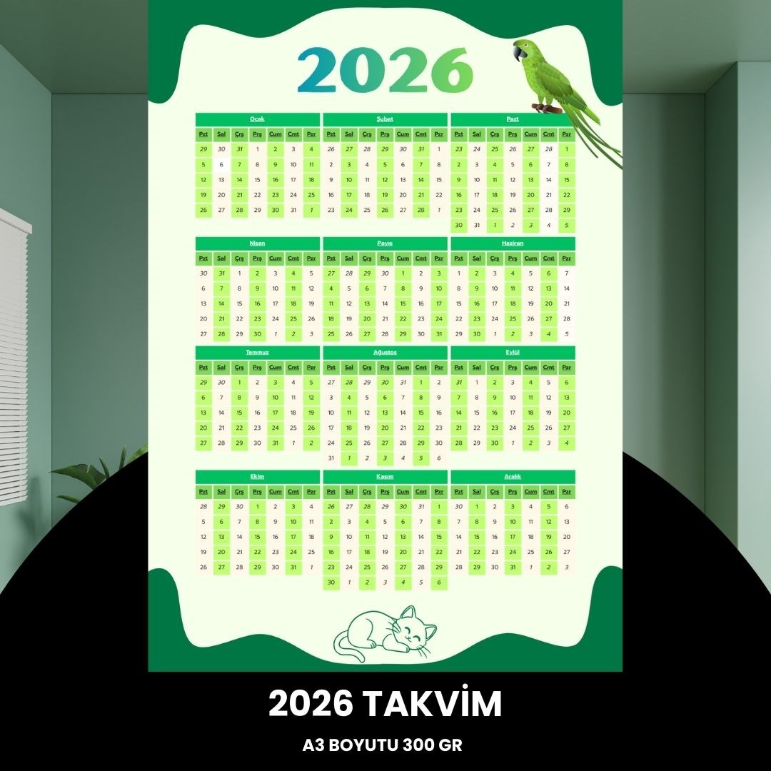 Ürün Açıklaması: 2026 yılınızı en sade ve şık haliyle planlayın. Yüksek gramajlı 300 gr. mat kuşe kağıt üzerine basılan bu takvim, hem profesyonel ofis ortamlarına hem de ev dekorasyonunuza mükemmel uyum sağlar. Kağıt Kalitesi: 300 gr. kalın yapısı sayesinde sayfalarda kıvrılma yapmaz, tok bir duruş sergiler. Yüzey Özelliği: Üzerine not alınabilir mat yüzey; kurşun, tükenmez veya jel kalemlerle dağılma yapmadan yazım imkanı sunar. Boyut: Standart A4 (21 x 29,7 cm) boyutuyla her alana uygun. Kullanım: İster duvara asın, ister masanızda altlık olarak kullanın. Minimalist çizgileriyle göz yormaz, odaklanmanızı sağlar.