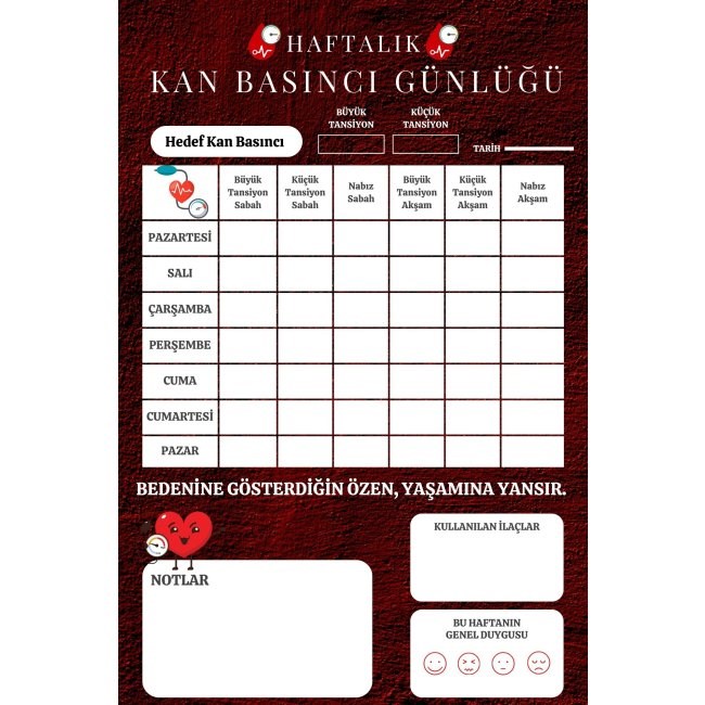 Tansiyon Ölçüm ve Takip Defteri – A6 Boyutu