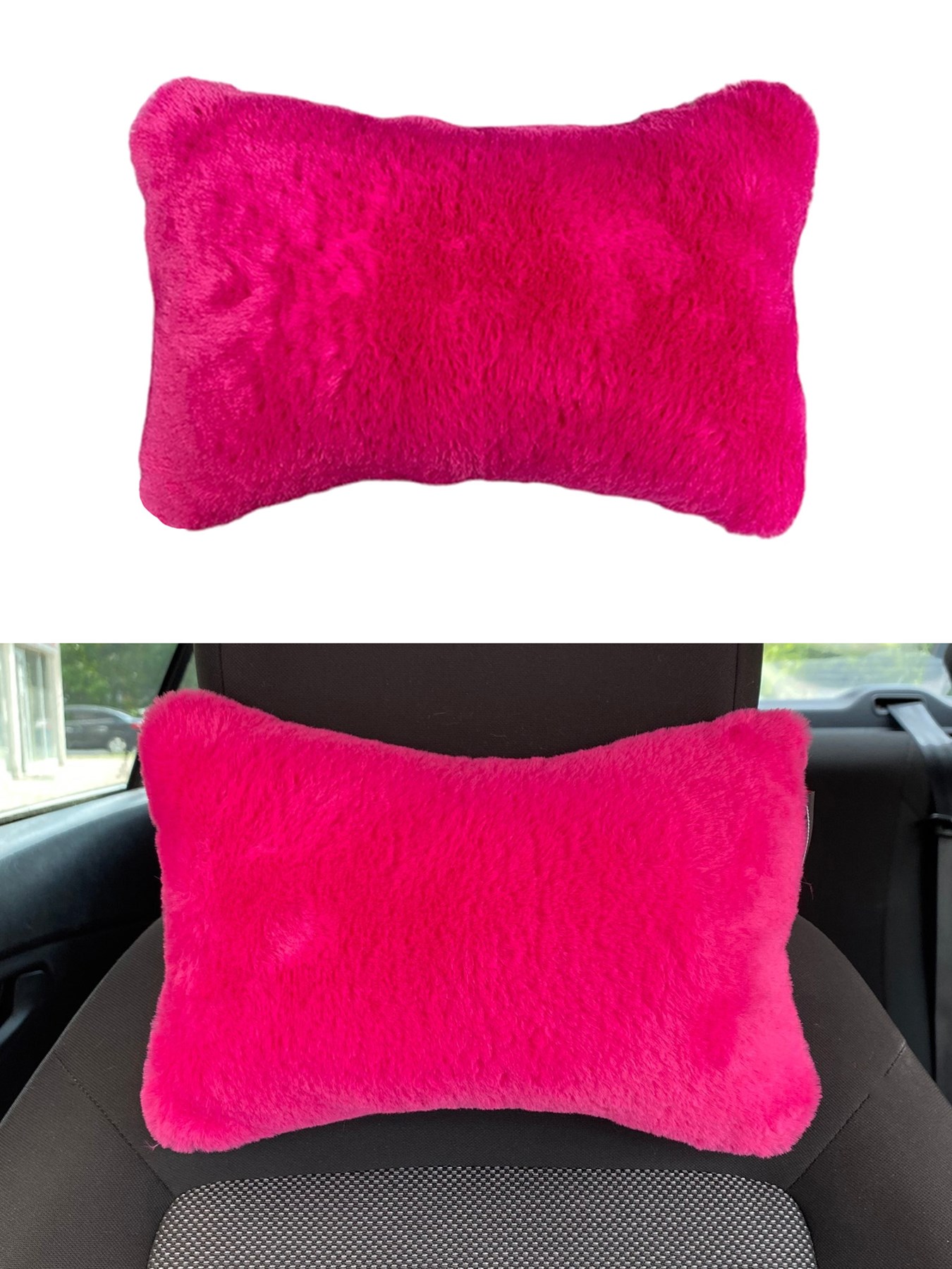 Yumuşak Peluşlu Ortopedik Araba Seyahat Boyun Yastığı Tekli Fuşya Pembe