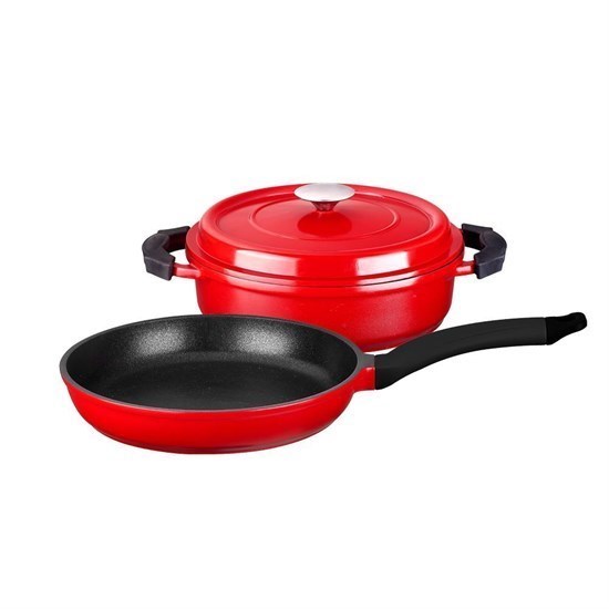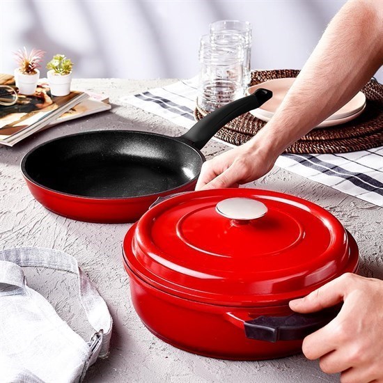 Taurus 3 Parça Granit Döküm Tencere Tava Seti Kırmızı - 31950