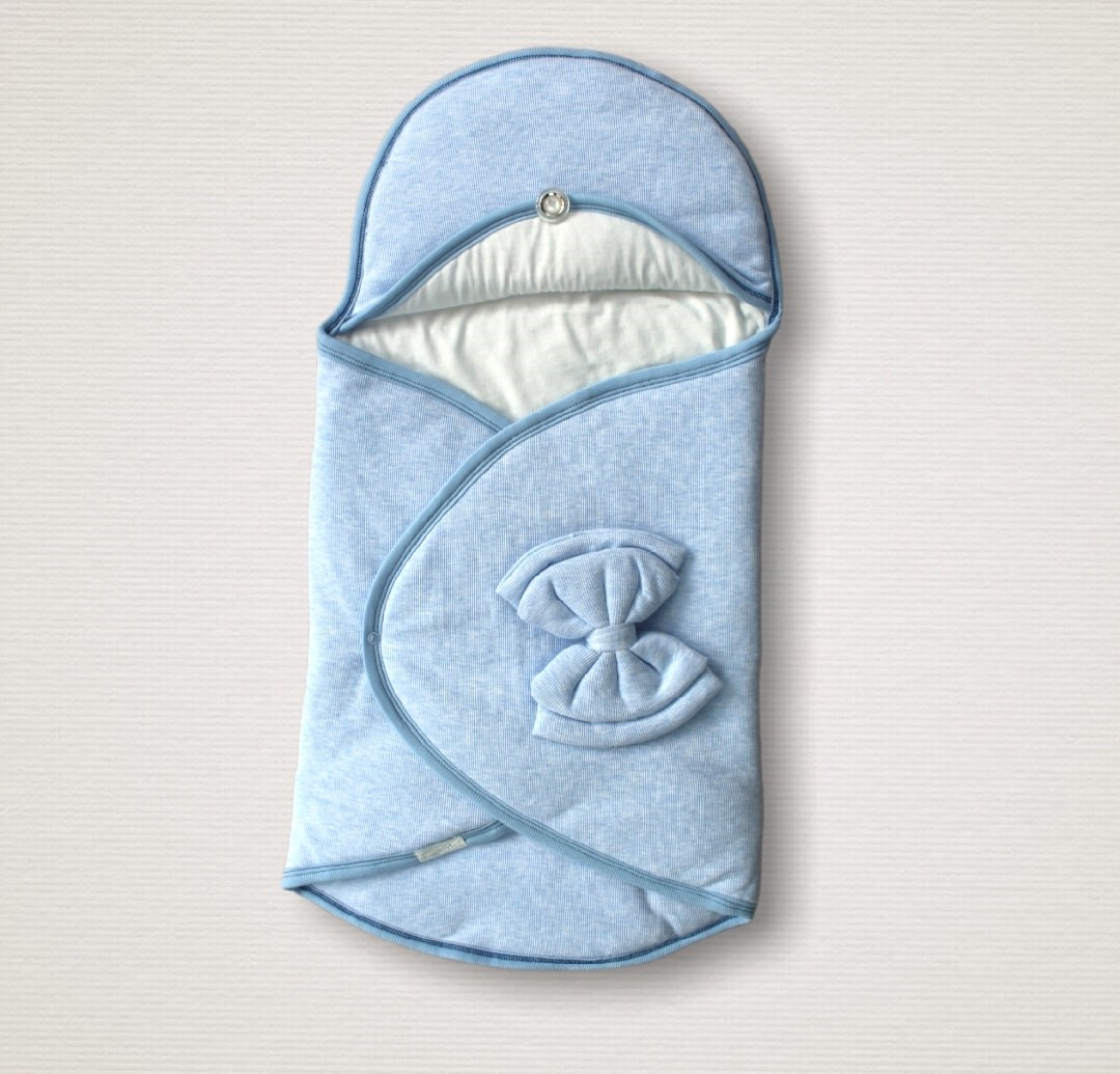 Yenidoğan Düğme Detaylı Çizgi Efektli Çift Fiyonk Klasik Kundak Bebek Battaniyesi