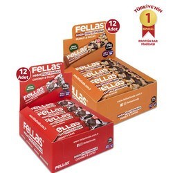 Fellas Yüksek Protein Bar 45g Süper İkili Kutu 24 Adet - Hind. Cevizli x12 Adt+Yer Fıstıklı x12 Adt