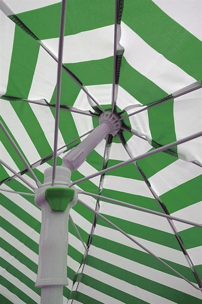 180cm çaplı Bahçe / Plaj Şemsiyesi Bahçe, balkon ve plajda kullanıma uygundur Güneş açısında göre 360 derece istenilen yönden eğilebilir Açık halde yükseklik210cm ve çap180cm Elektrostatik beyaz boyalı boru Alt Boru Çapı 25×0,7 mm / Üst Boru Çapı 22×0,7 mm 3,88mm kalınlığında ve 90cm uzunluğunda 8 adet karbon çelik malzemeden üretilmiş tel Su itici özellikli 90 gr/m2 polyester kumaş Ürün ağırlığı 2kg Taşıma çantası ve sabitleme bidonu yoktur