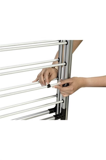 TEVALLİ KURUDY STYLE ÇAMAŞIR KURUTMA Ürün Özellikleri • Ağırlık: 2.9 kg• Dar mekânda çok çamaşır kurutabilme kolaylığı• 19 m çamaşır kurutma kapasitesi• Tamamı alüminyum özelliği ile ısıya, dış koşullara dayanıklıdır ve nemli havada bozulmaz• Çorap asmak için özel tasarlanmış plastik aparat• Plastik aksamları ısıya dayanıklıdır aynı zamanda ürüne modern bir görünüm katmaktadır.