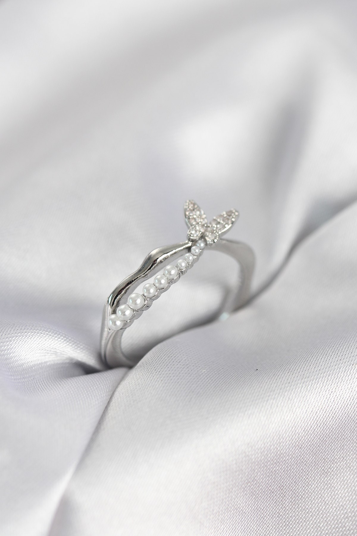 Gümüş Renk Kuyruklu Kelebek Model İncili Kadın Yüzük