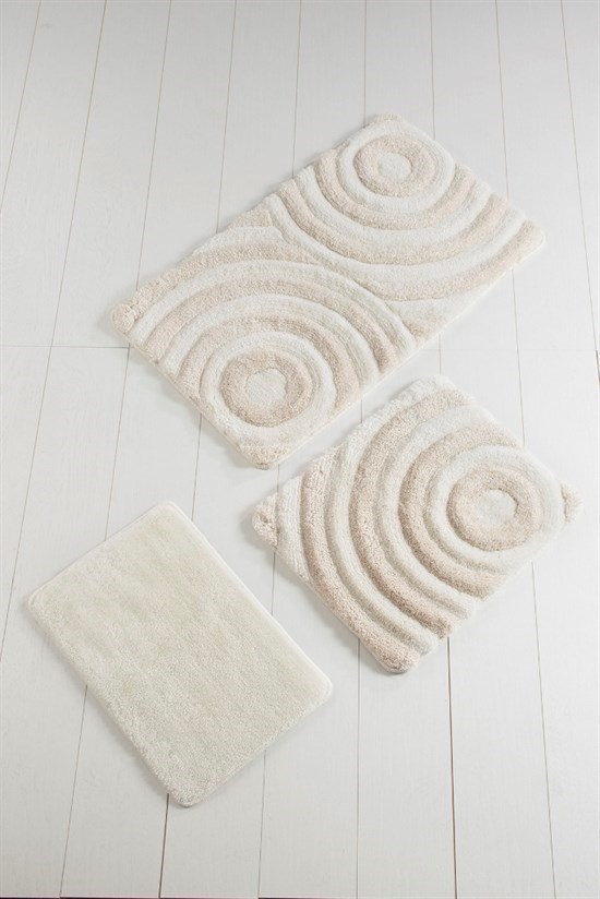 Wave Ekru 3Lü Set Banyo Halısı-23484