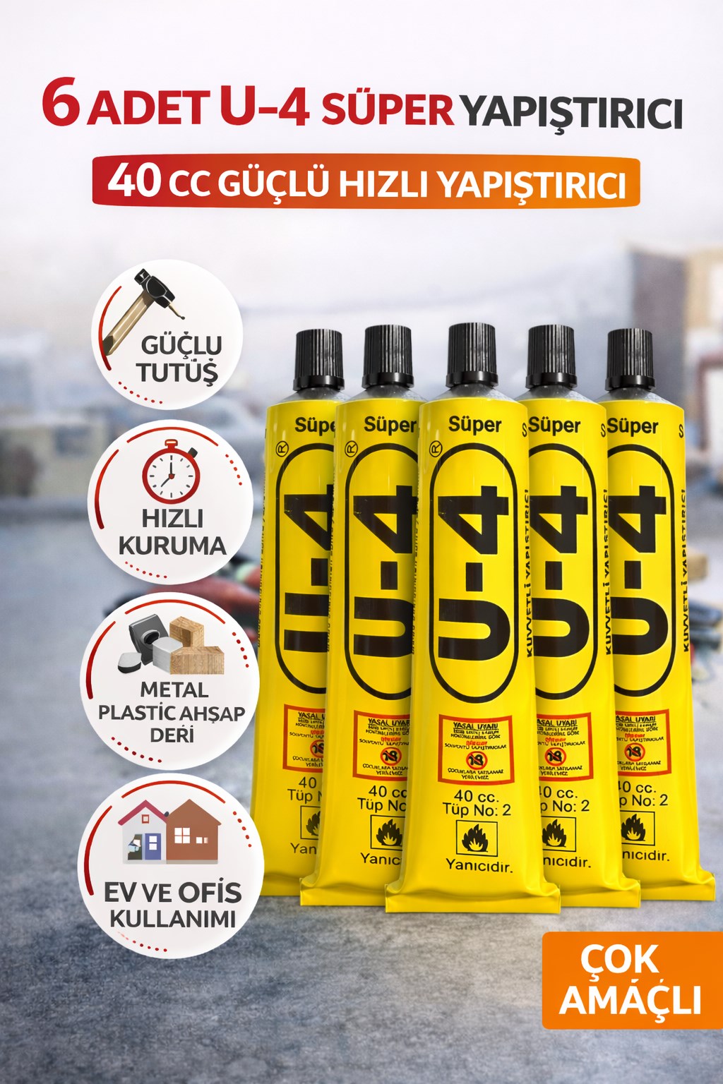U-4 Süper Yapıştırıcı 40 CC 1 Adet Güçlü Hızlı Yapıştırıcı Çok Amaçlı Metal Plastik Ahşap Deri Yapıştırıcı