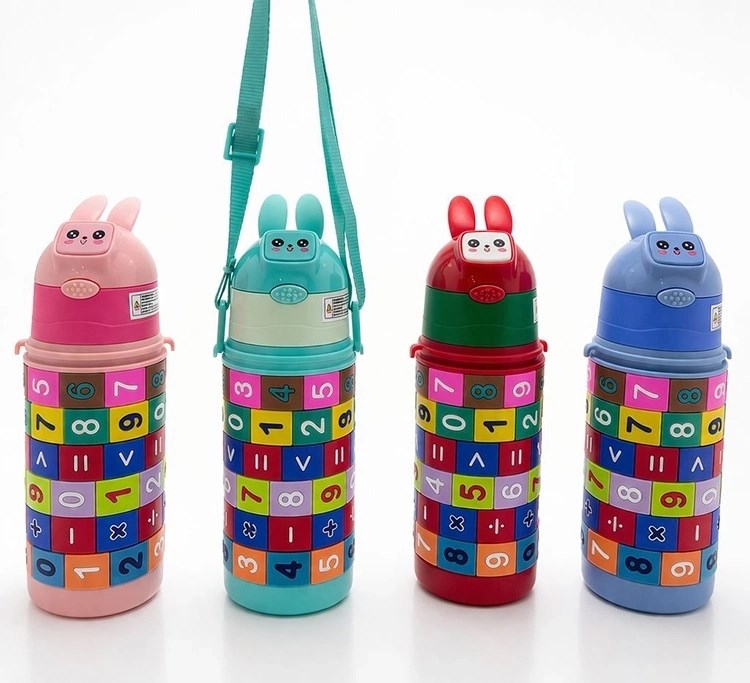 Eğitici Matematik Oyunlu Çocuk Termosu - Paslanmaz Çelik Pipetli Ve Askılı Matara Alk4654