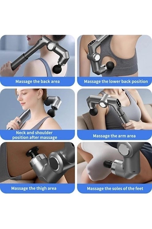 Sporcu Kas Masaj Tabancası 6 Kademe Güçlü Titreşim 4 Başlık Şarjlı Masaj Aleti