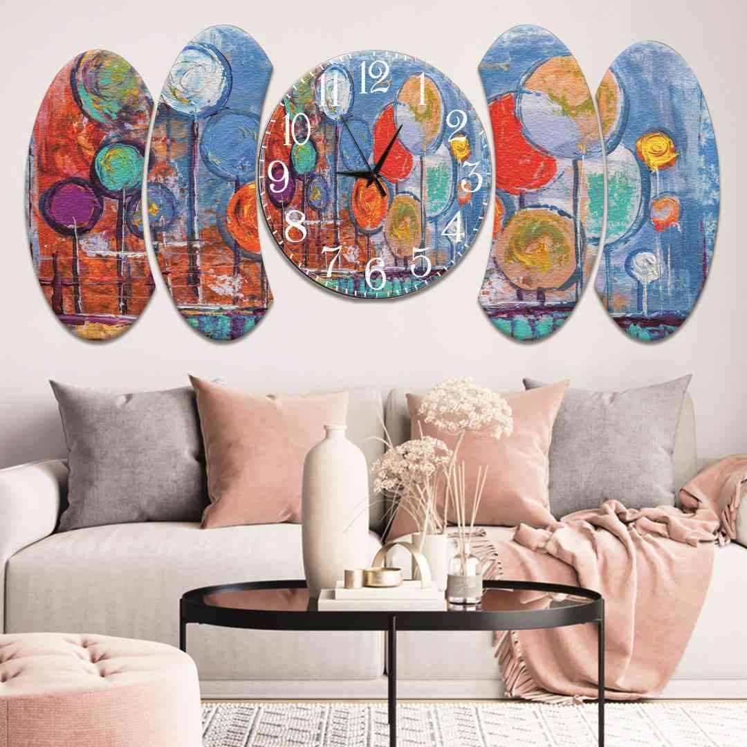 Evimona 5 Parça İllüstrasyon Tasarım Saatli Mdf Tablo