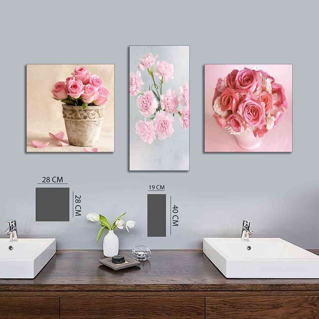 3 Parça Pembe Gül Demeti Mdf Tablo - 3Yatay-523 30X40