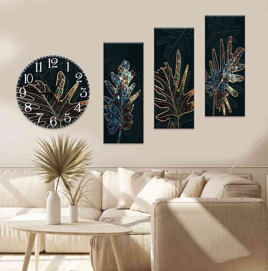 Evimona 4 Parça Çiçek Temalı Mdf Saatli Tablo Ds-0143