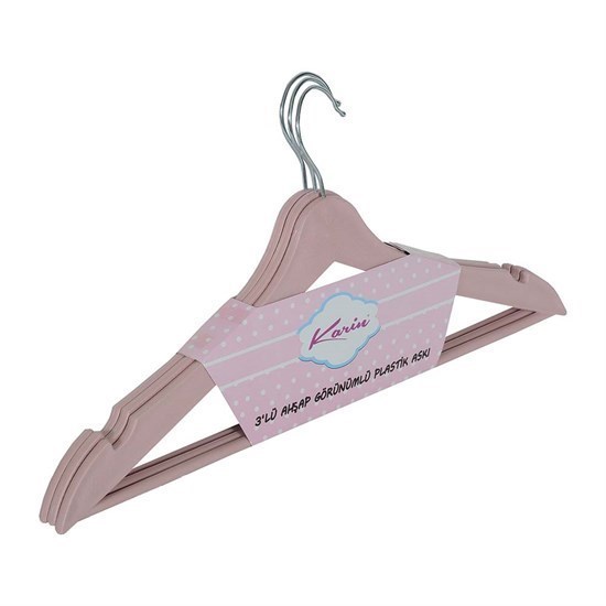 Ahşap Görünümlü Plastik Askı (3’Lü Pembe) - 28782