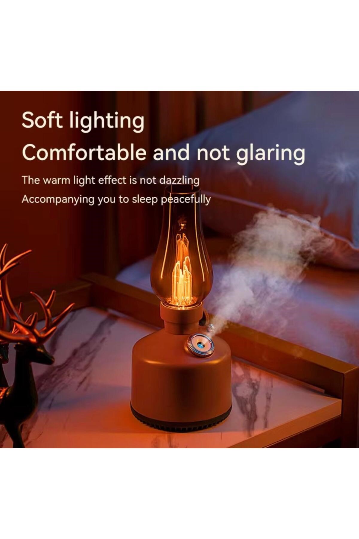 Estetik ve fonksiyonelliği bir arada sunan bu alev efektli vintage hava nemlendirici, ortama hem yumuşak bir ışık hem de ferahlatıcı nem kazandırır.; Şık tasarımı sayesinde dekoratif obje olarak da kullanılabilir.; Ayarlanabilir ışık parlaklığı ve buhar gücüyle kişisel konfor alanınızı kolayca oluşturun.; 💡 Özellikler: • Gerçek alev görünümüne sahip sıcak ışık efekti • Ayarlanabilir ışık parlaklığı (gece lambası modu) • Güçlü buhar çıkışı ile etkili nemlendirme • Sessiz çalışma teknolojisi • USB ile kolay kullanım • Kompakt ve dekoratif tasarım 🏠 Kullanım Alanları: Ev, yatak odası, ofis veya çalışma alanlarında ferah bir atmosfer sağlar.; Aynı zamanda romantik bir ambiyans yaratmak için mükemmel bir seçimdir.;