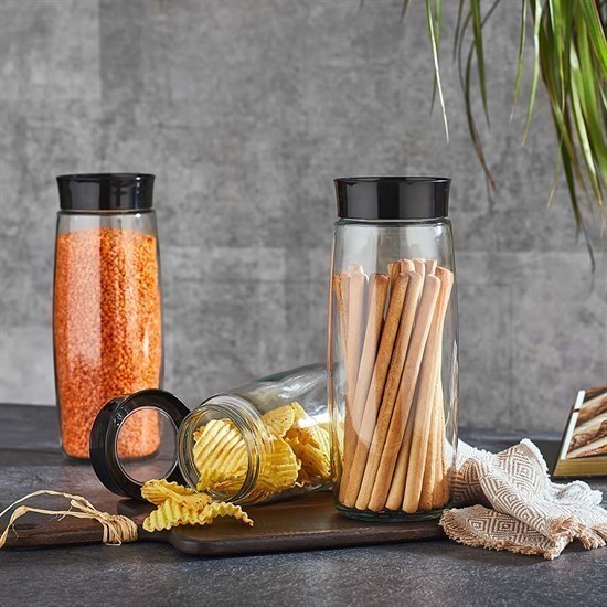 110x100x262 Zarif ve sade bir tasarıma sahip olan cam kavanoz kuru gıda, atıştırmalık, turşu, salça, un, hamur işi saklamak için idealdir.Bulaşık makinesine girebilir.