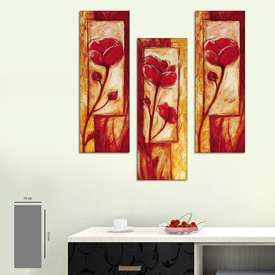 3 Parça Retro Çiçek Tasarım Mdf Tablo - T-3Dikey-29 19X40