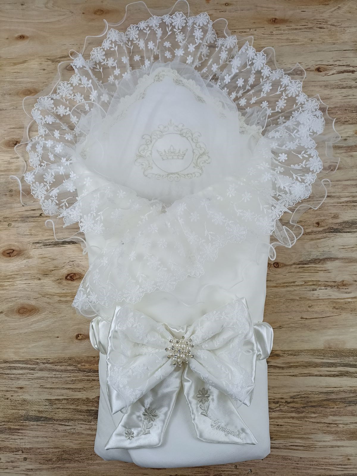 Yenidoğan İpek Venüs Taç Nakışlı Delüks Kundak Bebek Battaniyesi