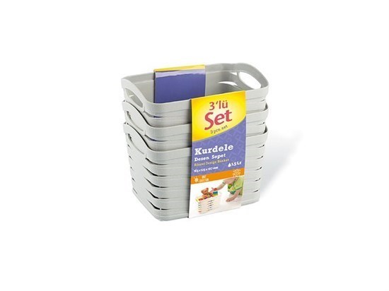 Riband Desenli Plastik Sepet-Kollu Etiketli 3 Pc Set (16,5 X - 31418