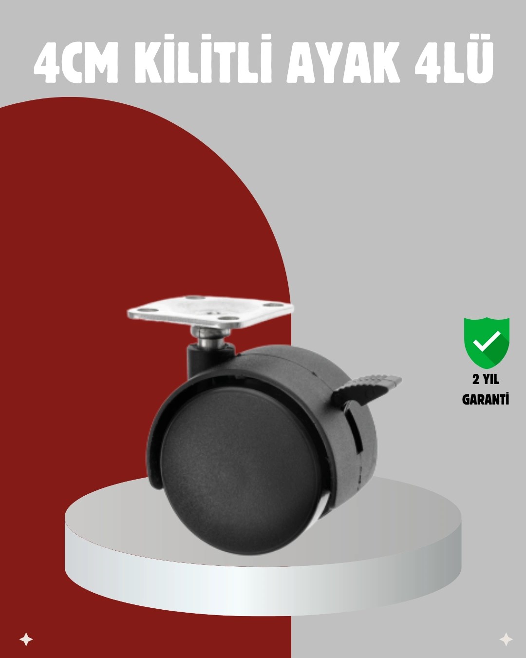 Mobilya İçin Kilitli 4 Cm Tekerlek Ayak Seti