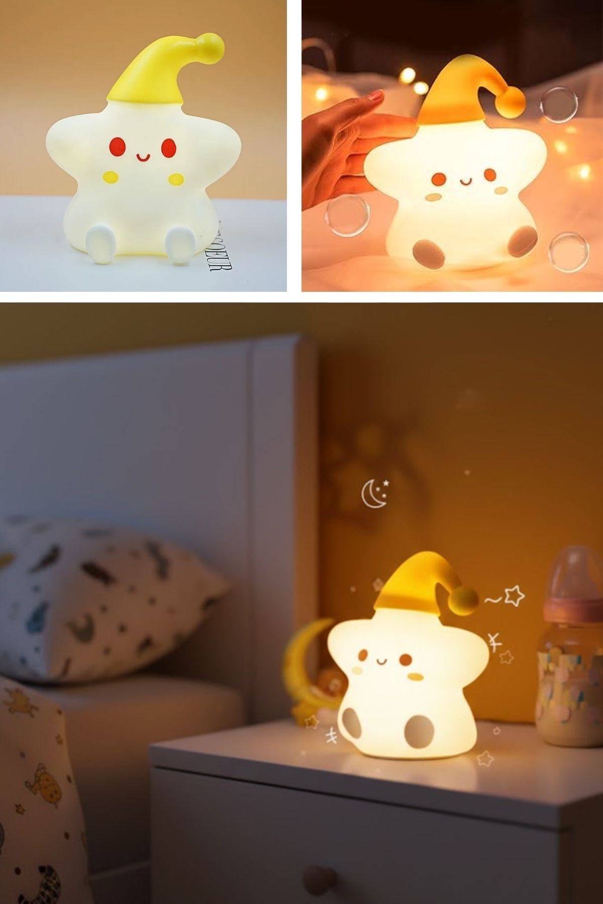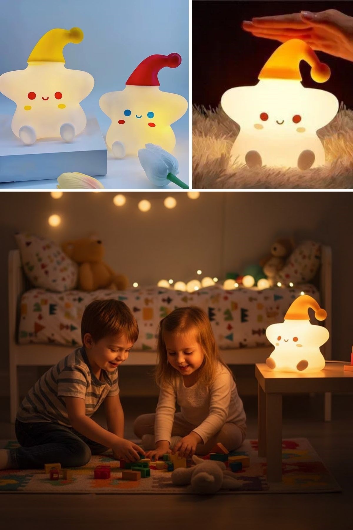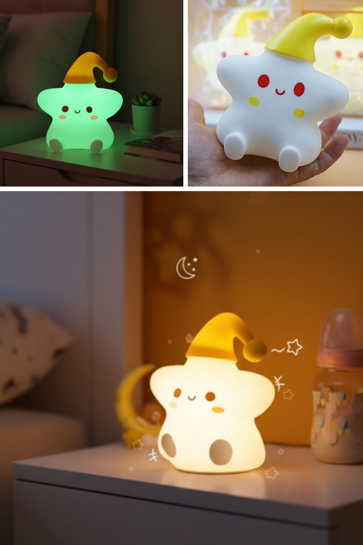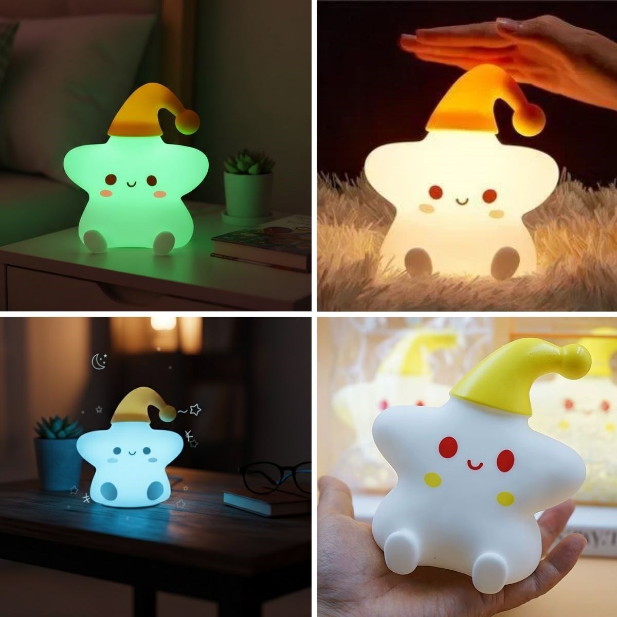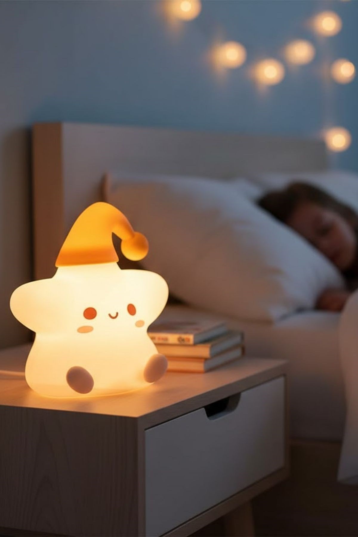 Yıldız Figürlü Pofuduk LED Gece Lambası, sevimli yıldız tasarımı ve yumuşak dokulu gövdesiyle yaşam alanlarınıza sıcak ve huzurlu bir atmosfer kazandırır. Göz yormayan LED ışığı sayesinde çocuk odaları, bebek odaları, yatak odaları ve masaüstleri için ideal bir gece aydınlatması sunar.