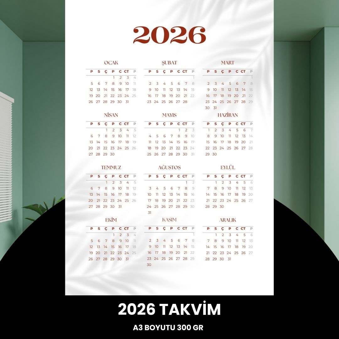 Takvim 2026 Premium A3 300 Gr Dijital Baskı Beyaz Bordo