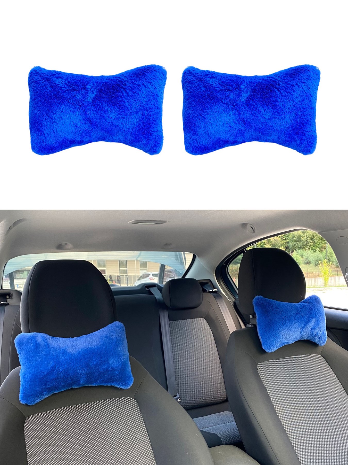 Yumuşak Peluş Ortopedik Araba Seyahat Boyun Yastığı 2'li Mavi