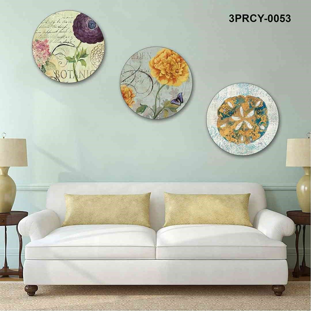 3 Parça Dekoratif Çizim Çiçek Desenler Mdf Tablo - T-3Prcy-0053 30X30