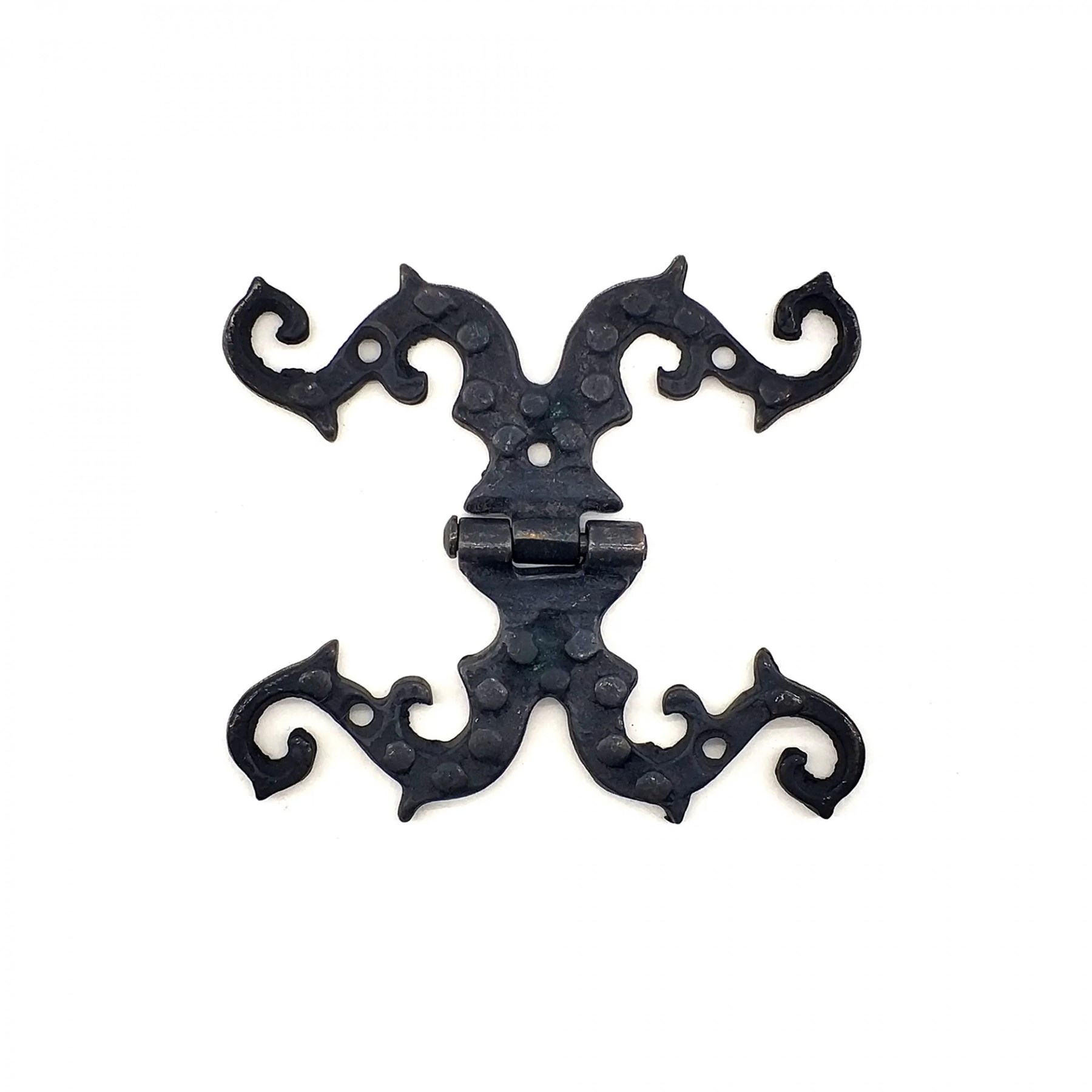 Antika Tarz Dekoratif Pirinç Süslü Menteşe - 100x90 Mm, Oksit