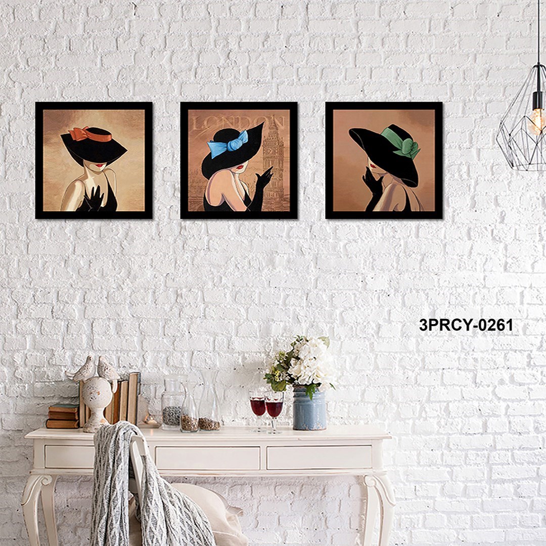 3 Parça Modern Şapkalı Kadın Tasarım Mdf Tablo - 3Prcy-0261 30X30